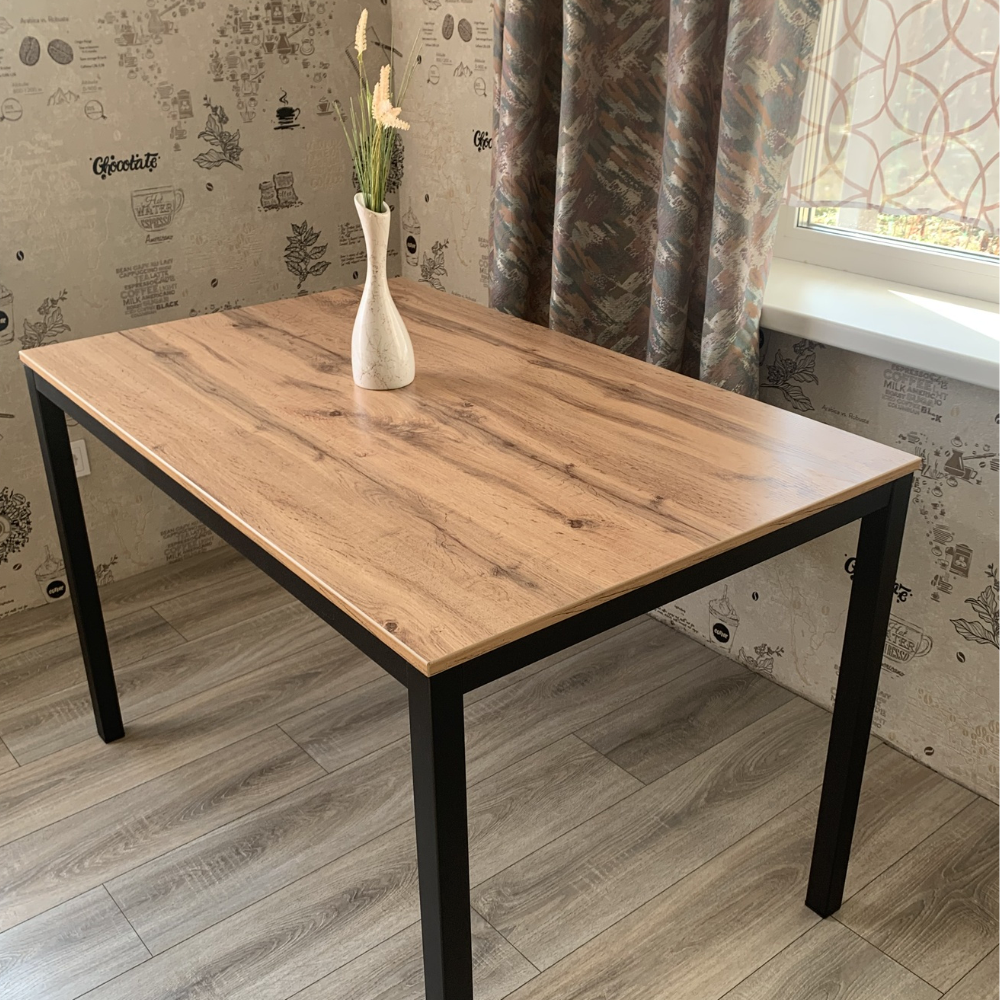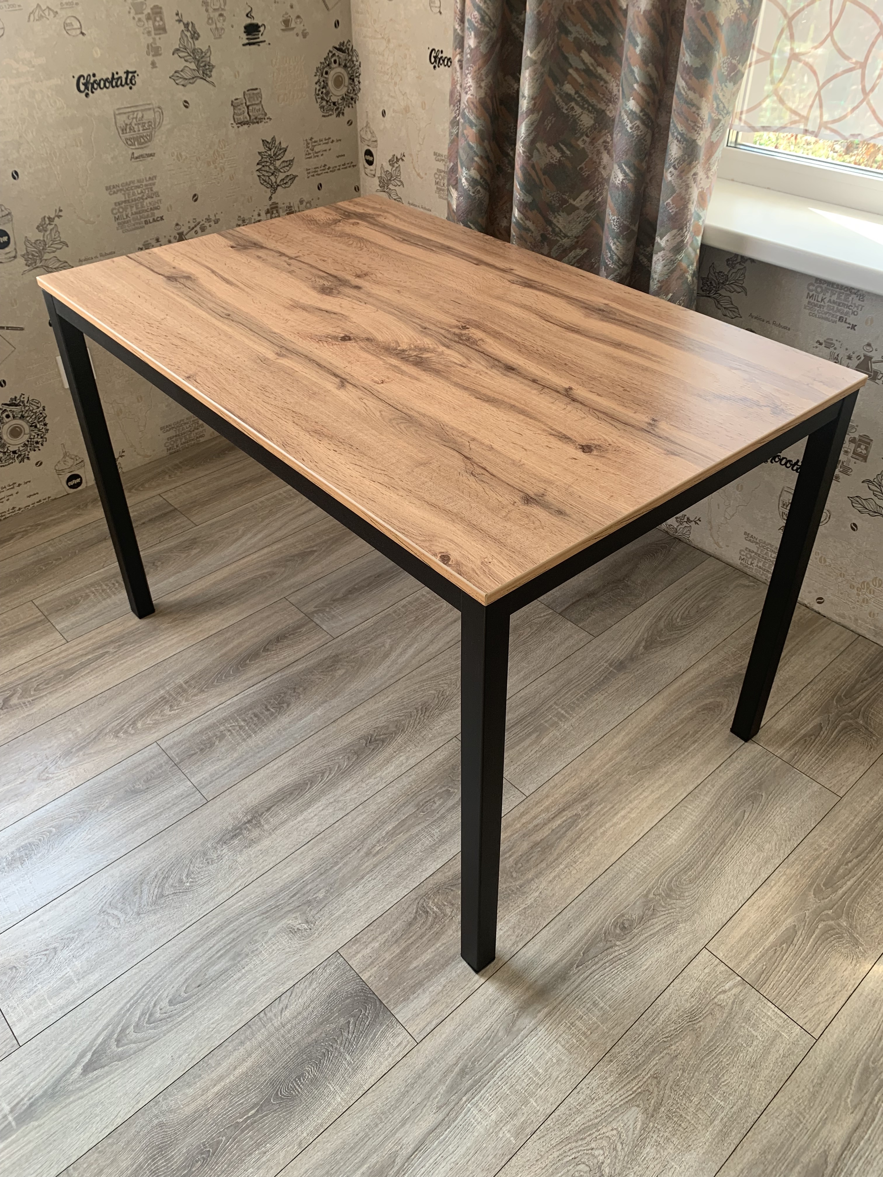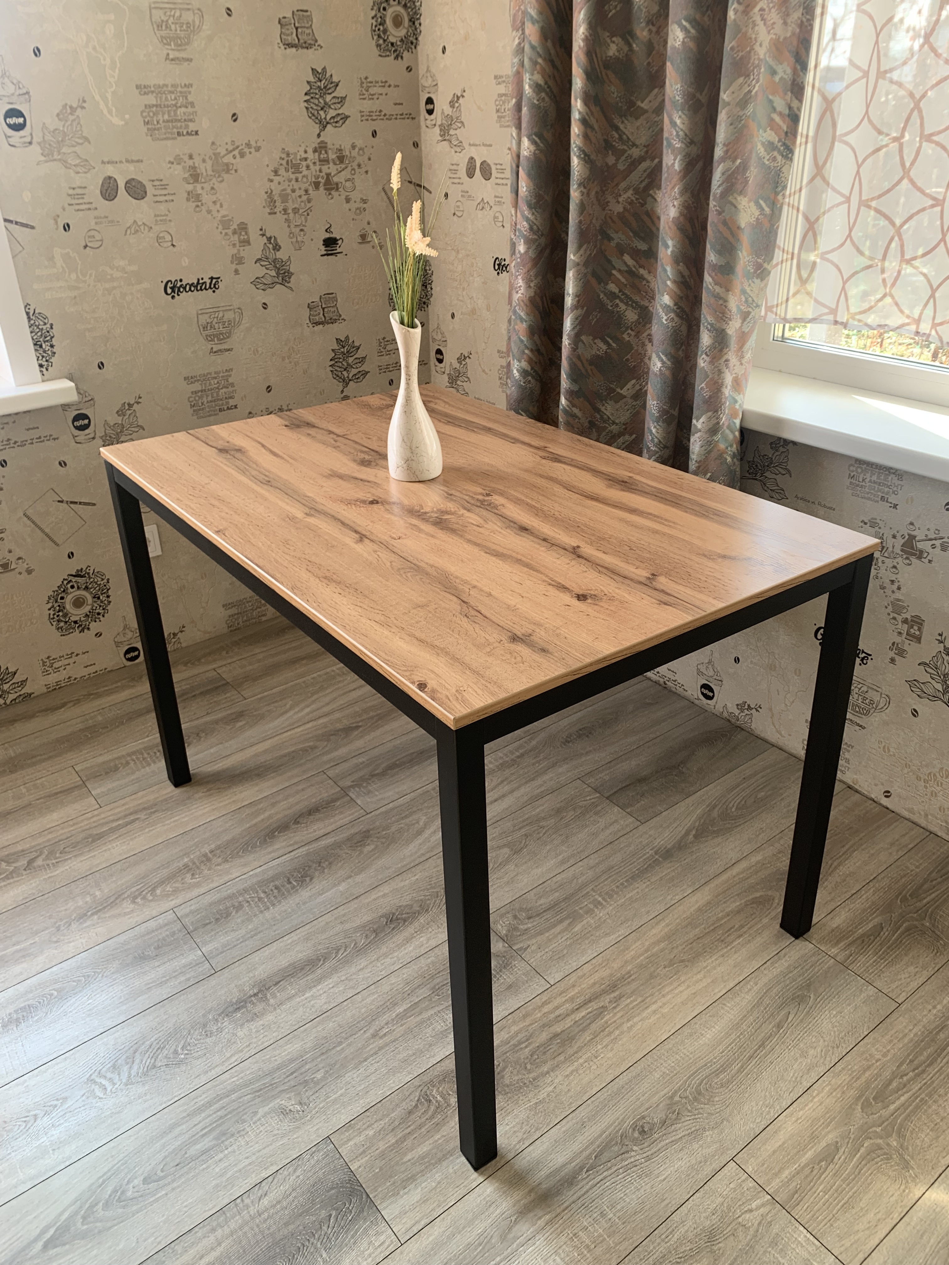 Кухонный стол в стиле Лофт не только идеально впишется в интерьер, а так же добавит новизны в уже привычный интерьер. Габариты стола (ДхШхВ): 115х75х75 см, что позволит расположиться за ним комфортно. Столешница изготовлена из ламинированной ДСП, края обработаны ПВХ кромкой, толщиной 2мм. Поверхность столешницы обладает устойчивостью к воздействию моющих средств, стойкостью к стиранию, царапинам и выцветанию. Толщина столешницы 16, 22, 32мм. Основание металлическое разборное, изготовлено из металлической профильной трубы . Подстолье покрашено порошковой краской. Идеальное сочетание современного стиля и практичности на каждый день!Металлическое подстолье — это не просто опора, а основа стильного и практичного стола. Легко комбинируется с любыми материалами, не требует сложного ухода и прослужит десятилетиями. Отличное соотношение цены и качества!