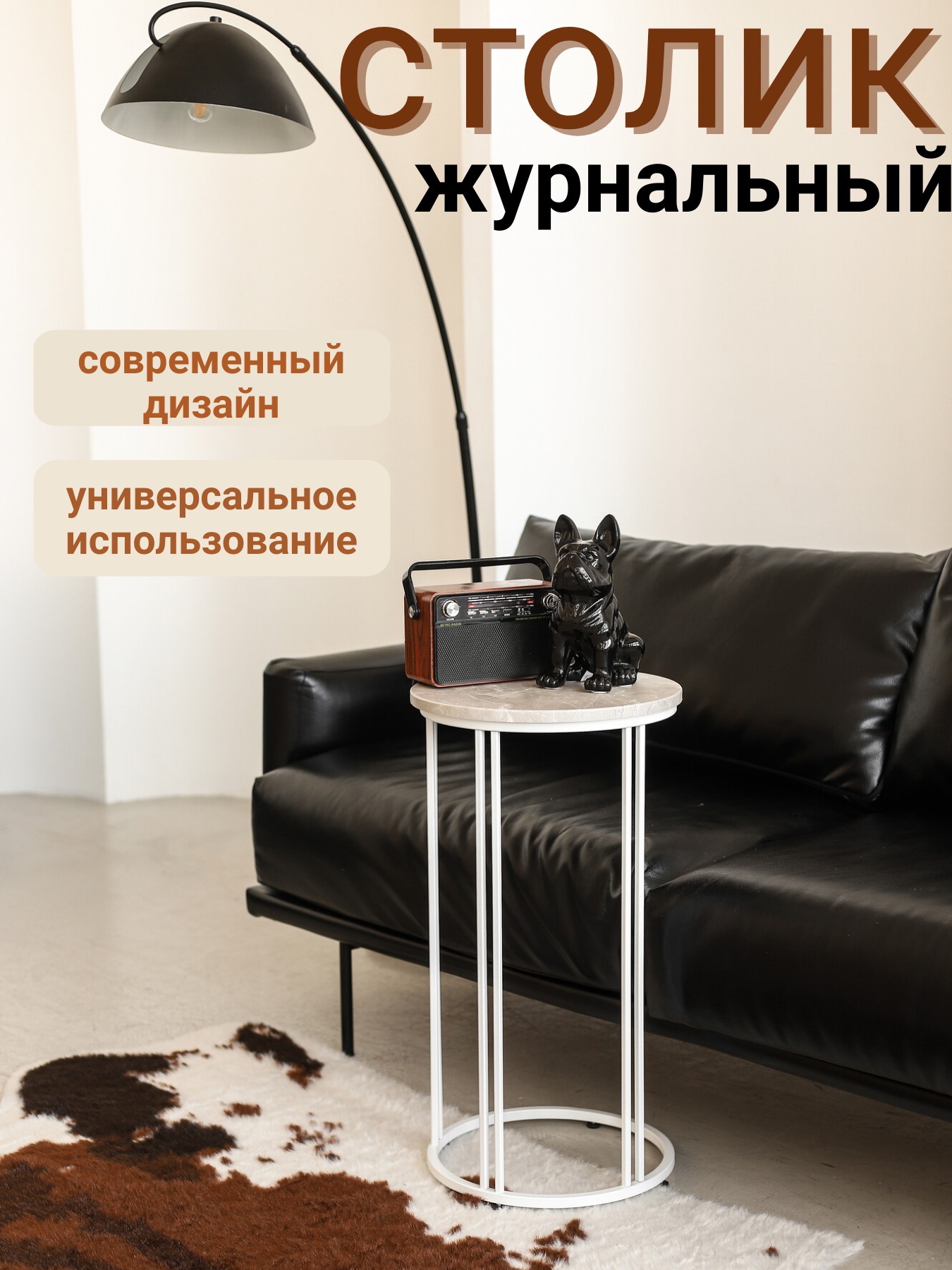 Журнальный столик - это элегантное и удобное дополнение к вашему интерьеру. Круглый, металлический, маленький и компактный, он идеально подходит для использования в качестве прикроватного, кофейного или приставного столика. Журнальные столики могут быть расположены рядом с диваном или кроватью, создавая стильный и уютный уголок для чтения, размещения напитков, цветов или декоративных предметов.