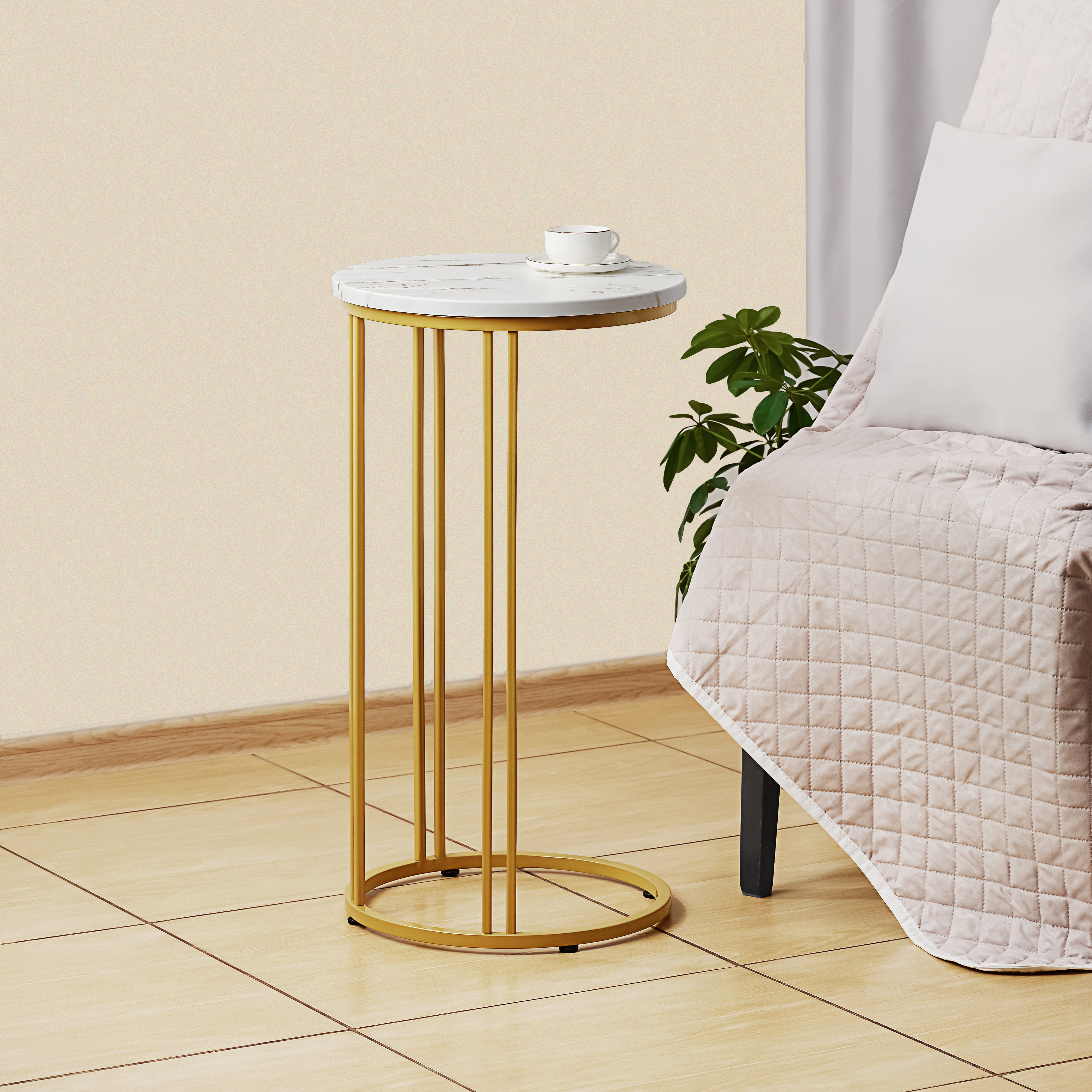 Журнальный столик - это элегантное и удобное дополнение к вашему интерьеру. Круглый, металлический, маленький и компактный, он идеально подходит для использования в качестве прикроватного, кофейного или приставного столика. Журнальные столики могут быть расположены рядом с диваном или кроватью, создавая стильный и уютный уголок для чтения, размещения напитков, цветов или декоративных предметов.